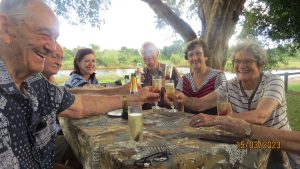 (Die flukse Frans en Michelle het ons ou mense wonderlik bederf. Vuur maak, braai, drankies aandra, koffie maak, skottelgoed was, foto’s neem – niks was vir die twee te veel om ons klein “reünie”vir ons vier oues gedenkwaardig te maak nie.