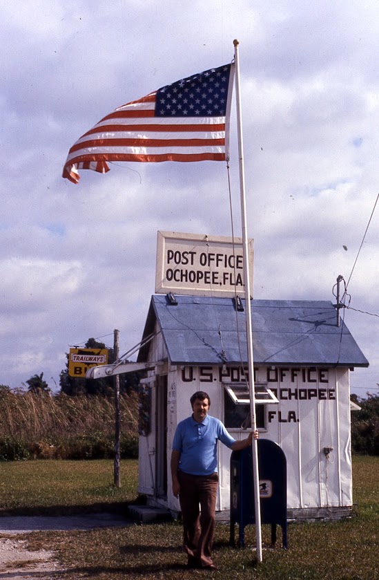 In Florida het ons onder meer ook kans gekry om die beroemde Daytona Board Walk van amper 2 km te stap, om ons te verstom aan die plaat luukse-seiljagte by Fort Lauderdale, om met die kleurryke papegaaie in Parrot Jungle, later herdoop tot Jungle Island, kennis te maak (foto) en om ‘n skool visse uit glasbodembootjies by Silver Springs te voer. ‘n Gunstelingfoto is van die uwe by die kleinste funksionerende poskantoor in die VSA in daardie stadium. Die opslaangeboutjie by Ochopee is skaars ses vk. m. groot. Grootte is werklik nie als nie!