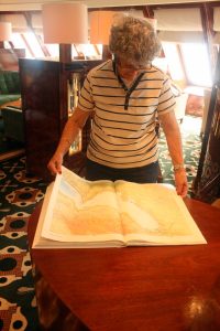 Toe ons nou die eerste dag aan boord op die bilioteek afpyl, was daardie atlas voorop in haar visier. Gelukkig is sy nie deur ‘n ander “wereldreisiger” voorgespring nie. Sy het gestraal.