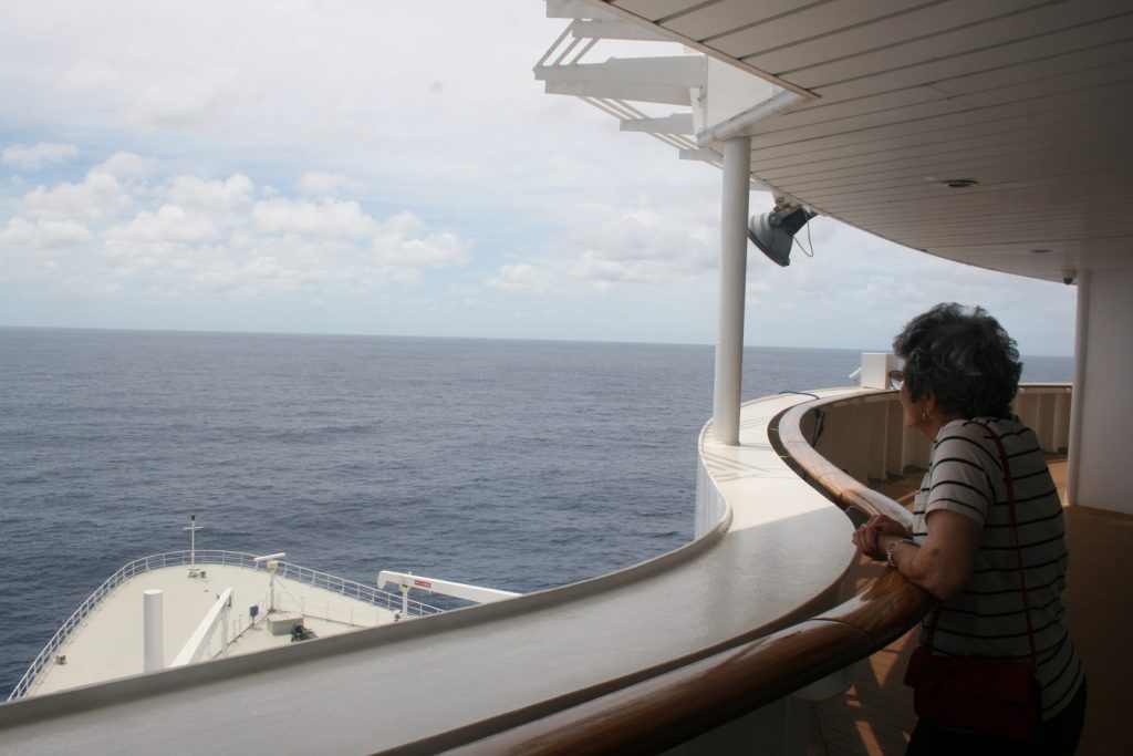 Soos knoppie-versotte stout kinders is ons van vroeg tot laat daarin op en af. Dikwels was ons alleen. Min van die ander 2 600 passasiers het skynbaar vergelykbare erg gehad aan die panoramiese uitsigte wat die observasiedek bied.