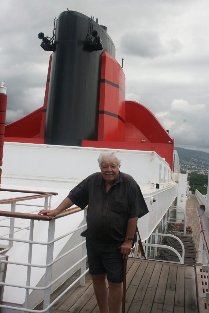 Oral is foto’s geneem, onder meer by die fiere rooi-en-swart skoorsteen met die naam Queen Mary 2 in sterk letters daaronder.