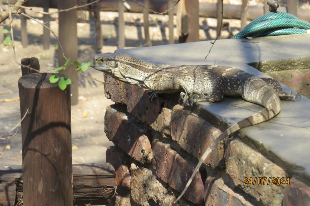 Nog ‘n eerste was kleinseun Jacob se netjiese Operasie Likkewaan met ‘n leertjie en ‘n braaitang. Die dierasie was briesend met sy lang tong flitsend toe toegang tot die grasdak hom ontneem word. Waar hy in die veld losgelaat is om ‘n nuwe tuiste te vind, het dit hom seker berou dat sy naels sy teenwoordigheid op die Harveyteels bo-op die gras aan die wakker seuns verraai het.