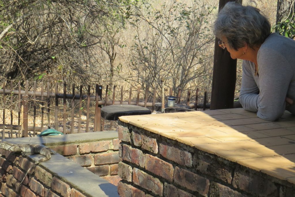 ‘n Ander hebbelikheid ontdek ons ook. Hy skuifel na die hoop braaihout in die lapa toe en kamoefleer hom soos ‘n stomp knoppiesdoring. Mooi kyk om hom raak te sien. Onthou om volgende keer versigtig te vat, Kan ‘n ontnugtering wees as die hout begin blaas en na jou toe hap.