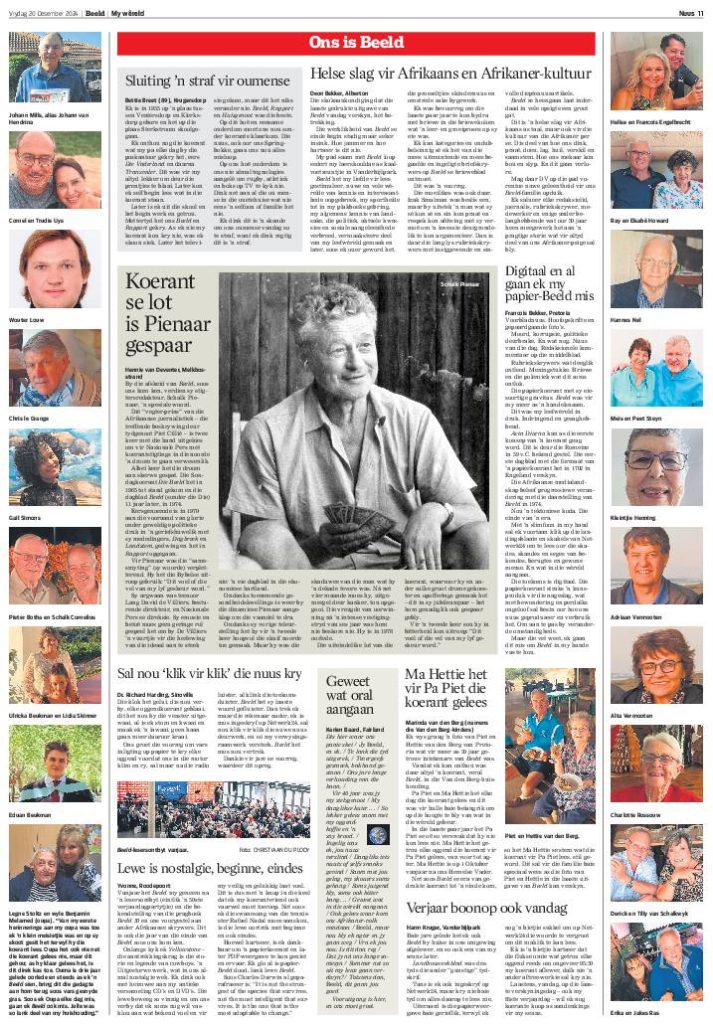 As tradisionele koerant vir amper 12 dekades en eksperimentele voorloper in ‘n proses van digitalisering sedert 2020 was sy bydrae tot die skat van versamelde Afrikaanse geestesgoedere enorm.
