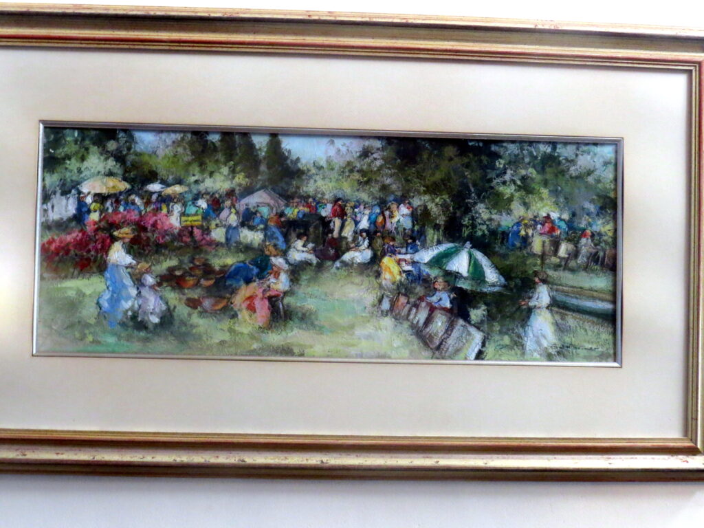 So min as wat ek van skilderkuns weet, wil ek my verstout om te beweer dat haar skildery (foto) van die informele kunsmark onder die bome met sy skilderye, kunstenaars en besoekers presies dit vergestalt.